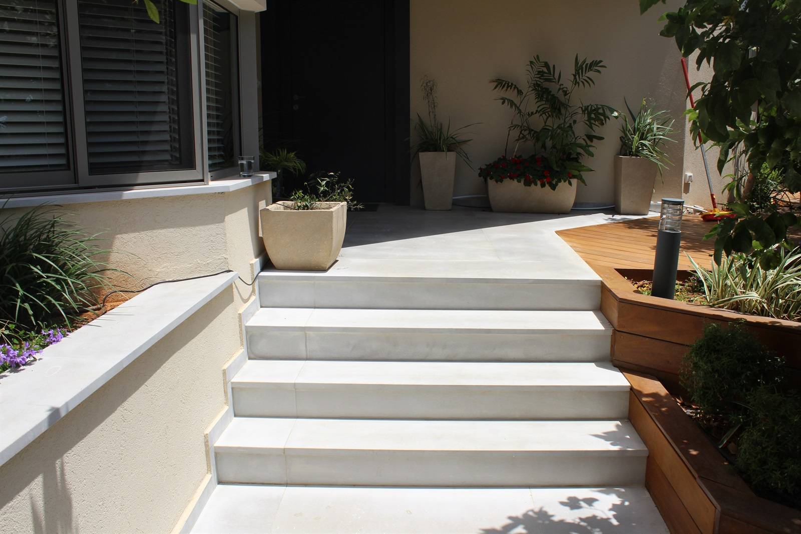כניסה לבית בגן חיים, ריצוף + מדרגות שיי גריי מותז חול