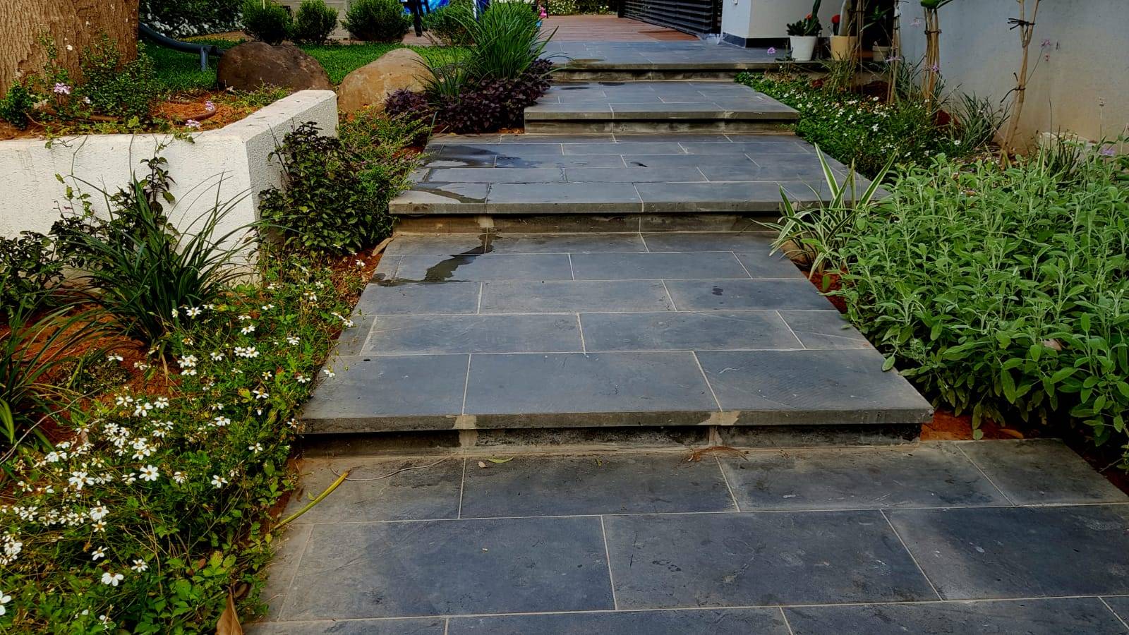 בית בהוד השרון, שביל כניסה + מדרגות מבזלת סינית אפורה