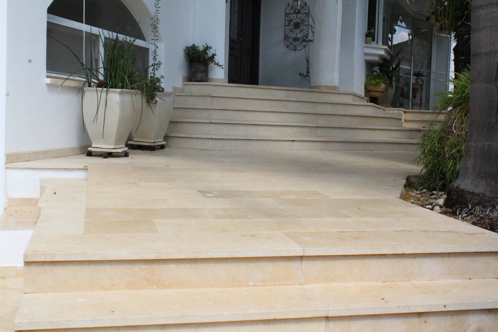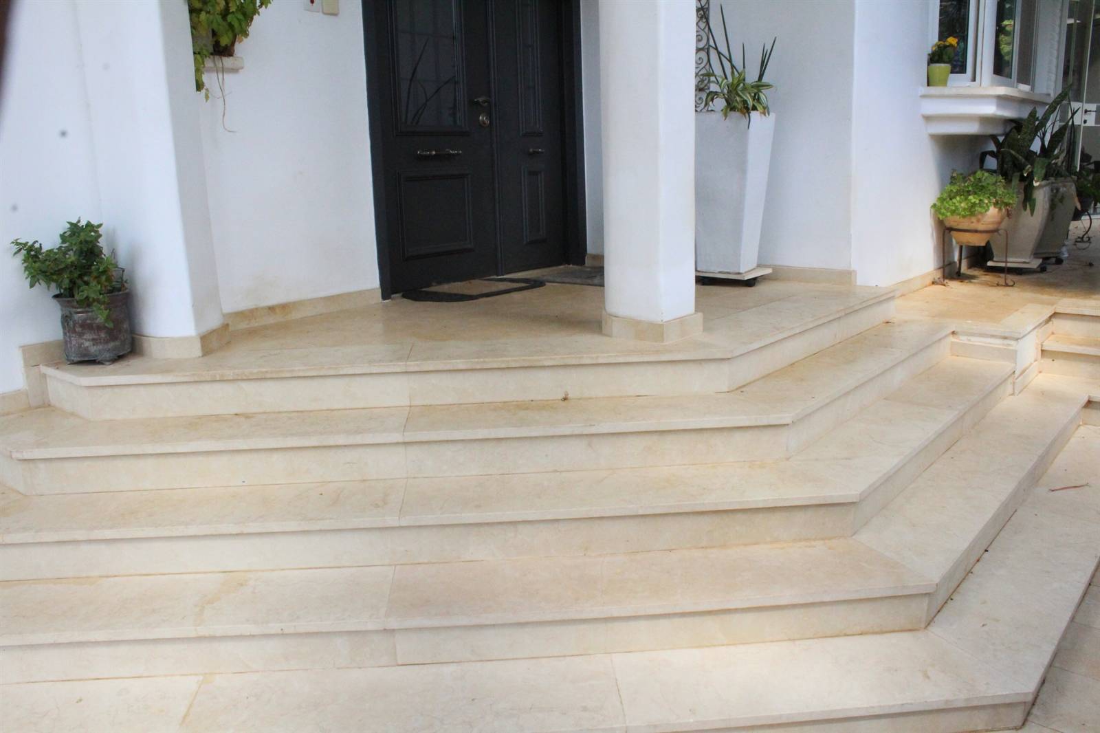 כניסה לבית + רחבה ומדרגות באבן חלילה ווסטני מוברש עיצוב אישי של בעלי הבית לאחר בחירה ממספר דוגמאות שלנו